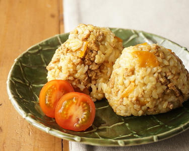 福神漬けと豚ひき肉のカレー風味おにぎり