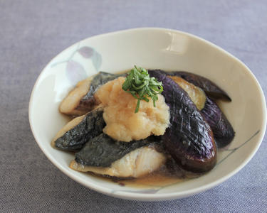 なすの色が移らないよう、大根おろしは魚の横に入れてください。