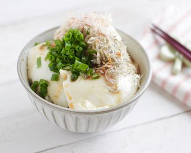 炊き立てのごはんにお豆腐をのせるだけで、食べ応えのあるどんぶりの完成!ピリッと辛いラー油がよいアクセントになっています。とっても簡単なので、朝ごはんなど手軽に済ませたいときの食事にもぴったりです。
