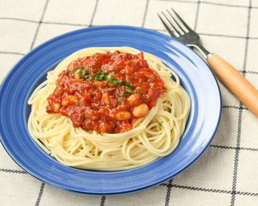 ひき肉に、茹で大豆を加えてボリュームアップさせたミートソースです。美味しく仕上げるポイントは、ひき肉を焼き色がつくまでしっかりと炒めること。あまりさわらずじっくりと火を通すと香ばしい美味しさがソースにうつります。