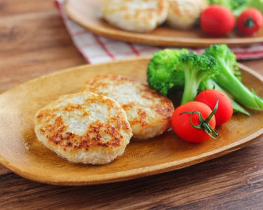 粉チーズをたっぷり加えたチーズ風味のハンバーグです。カルシウムたっぷりで骨粗しょう症予防に役立ちます。チーズはカルシウムの排出を促す、ナトリウムも多く含むので使い過ぎには注意しましょう。