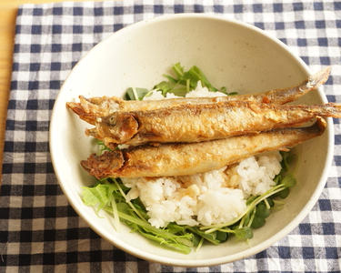 ししゃもは頭から尻尾まで丸ごと食べられるので骨粗鬆症予防にはもってこいの食材です。味付けはなんと醤油と生姜だけで簡単にできます。揚げものですが衣を薄くすることで吸油量を減らし、貝割れ大根のほのかな辛みでサッパリとした味付けに仕上げました。