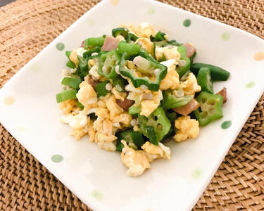 オクラとたまごのベーコン炒め