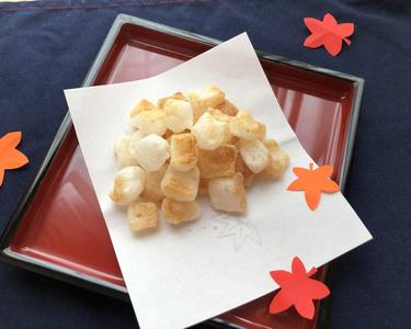 思い立ったら5分で出来ます。薄い切り餅は、表面を乾燥させなくてもおかきになります。ぷっくりした形でサクッとした軽い歯触りが美味しいですよ。お子様の急なおやつにも!最後に七味や青のりをまぶしてアレンジしても良いですね。