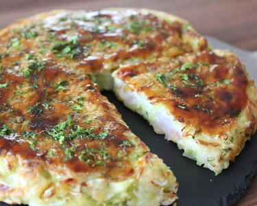 フライパンに油を熱し、2の生地を流し込む。蓋をして5分ほど弱火で蒸し焼きにする。表面がやや固まってきたら裏返し、さらに3~5分焼く。