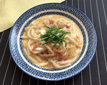 クリーミーであたたかい和風カルボナーラうどんはいかがでしょうか。ボウルの中で麺と具とソースを混ぜて仕上げるので、簡単で卵が固まる心配もありません。サッと作れてみんなが大好きな味!