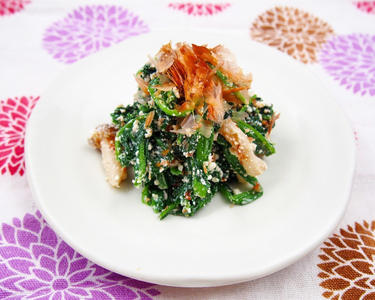 チーズの中でも脂質が少なく低カロリーなカッテージチーズを使った和え物です。洋食に使われる事の多いカッテージチーズですが、かつお節と醤油を使って和風に仕上げました。小松菜とカッテージチーズにはカルシウムが多く含まれており、骨粗しょう症予防やダイエット中のイライラを抑える効果が期待できます。