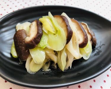 ネギは0.5~1cmの斜め切りにする。しいたけは0.5cmの薄切りにする。