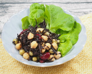和食に使われる事の多いひじきですが、実はサラダにもピッタリの食材です。カルシウムや葉酸、食物繊維等、栄養も豊富。ミックスビーンズと組み合わせる事で食感が良くなり、満足感アップにつながります。お酢を使ったドレッシングで、食べやすいサッパリとした一品に仕上げました。