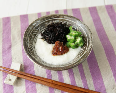 長いもにはカリウムが豊富に含まれ、体内の余分なナトリウムの排出を促す働きがあり高血圧など生活習慣病の予防に役立ちます。暑くて食欲のないときも、そばやご飯にかけると美味しく頂けます。梅の香りが食欲をそそります。