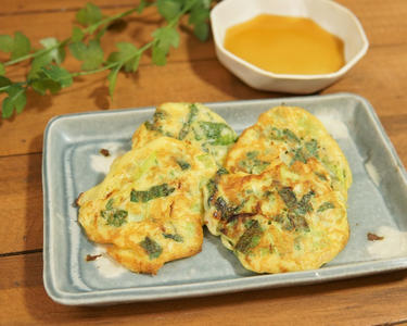 根深ねぎと小松菜の落とし焼き