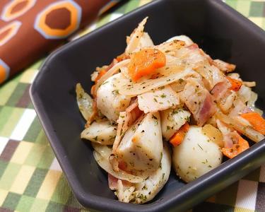 さといもを使ったジャーマンポテトです。さといもはじゃがいもに比べてカロリーが低く、体からナトリウムを排出する効果の期待できるカリウムを多く含んでいます。箸休めやおつまみにいかがでしょうか?