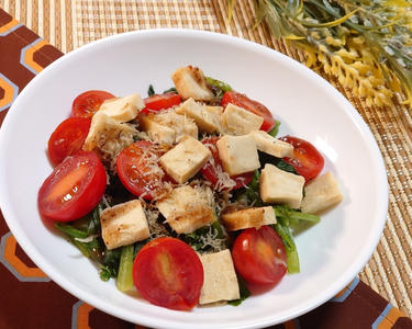 カルシウムを多く含む高野豆腐を、ごま油香るクルトンにした和風サラダです。ビタミンDを含むしらすとの相性も良く、骨の健康を気にされている方や、少し変わったサラダを食べてみたい方にもおすすめです。