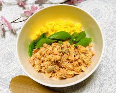ピンク色が華やかな、三色丼はいかがでしょうか。さけは抗酸化作用の期待できるアスタキサンチンというカロテノイドが多く含まれ、美容にも嬉しい食材です。