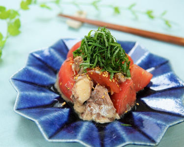 さばの水煮缶と湯むきトマトのさっぱりぽん酢和え