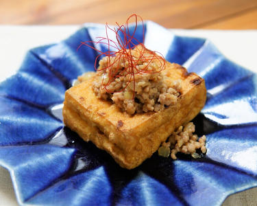 生揚げの豚そぼろがけにんにく味噌風味