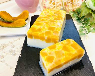 パウンド型などのお好みの型に2のかぼちゃを入れ、上から4の寒天液を静かに流し入れる。 粗熱がとれるまでは常温で、冷めたられラップをかけて冷蔵庫で2時間以上冷やし固める。
