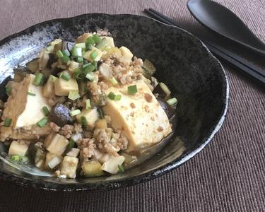 豆腐を大きく崩してゴロゴロとした野菜のあんをかけているので、豆腐の主菜でもボリュームたっぷりです。また、噛み応えのあるエリンギを加えているので、満腹感もしっかりあります。豆腐にはたんぱく質が豊富に含まれていますが、必須アミノ酸のリジンだけは少ないので、豚ひき肉をプラスして補っています。