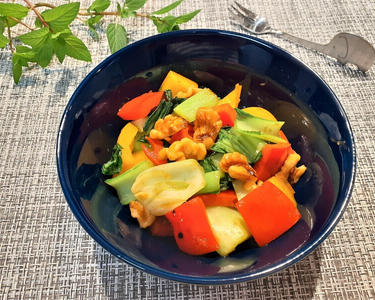 コールドスタートで簡単!チンゲンサイとパプリカのくるみ炒め