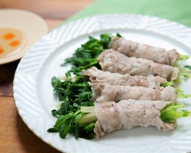 豆苗としょうがの豚肉巻き