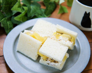 サンドイッチ用の食パンを3枚とも半分に切る。ラップの上に食パン1枚をのせ、3をのせ広げる。もう1枚の食パンをのせラップで包む。残り2つも同様にする。冷蔵庫で10分ほど冷やす。