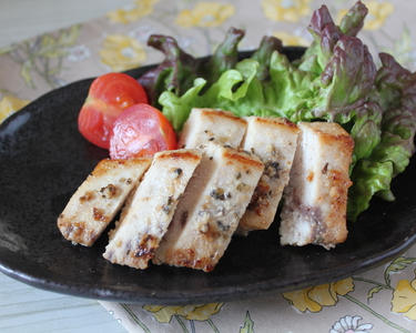 フライパンにオリーブ油を敷いて強火で熱し、1を置き、表面が2mm程白くなるまで焼いたらさっと返して全面を焼く。
