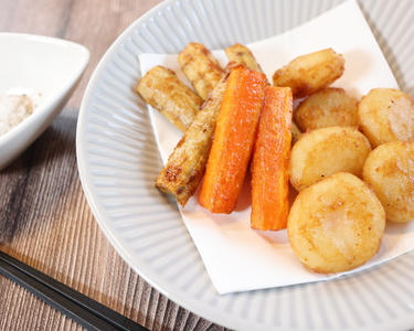 くわいにはカリウム、リン、ビタミンEが多く含まれています。ビタミンEは抗酸化作用があり、皮膚が老化するのを抑えます。また血行を良くする働きがあるため、顔色が良くなり美肌効果につながります。薄い衣で揚げ焼きにすることで、カロリーを抑えています。