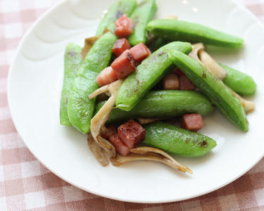 スナップえんどうと舞茸のベーコン炒め