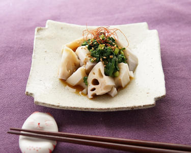 香り爽やか!ゆでれんこんのしゅんぎくダレ