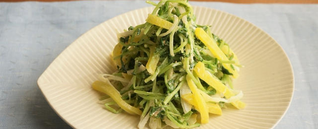 豆苗とたくあんの胡麻マヨサラダ