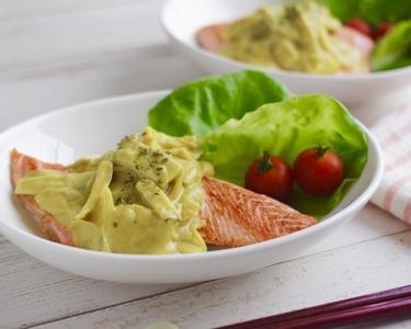 鮭とエリンギのカレークリームソース