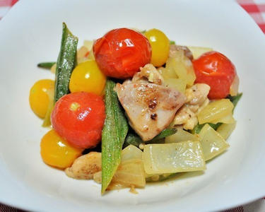 ぱぱっとおしゃれ!ミニトマトと鶏もも肉の白ワイン煮