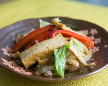 厚揚げと野菜のにんにく味噌炒め