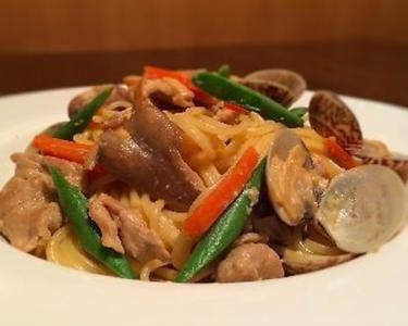 サーモンとほうれん草としめじのレモンクリームパスタ