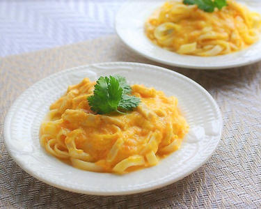 豆乳マーガリンでコクをプラス!菜の花とたらこの春色しらたきパスタ風