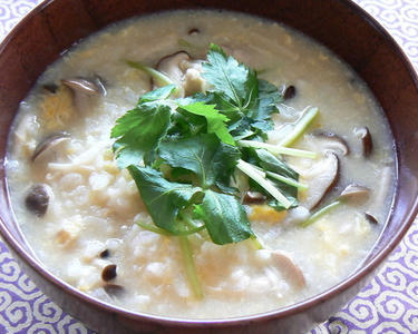 きのこと鶏肉の雑炊