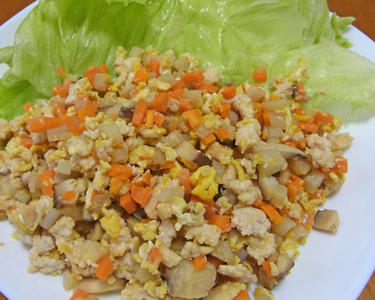 ピリ辛鶏そぼろのレタス巻き
