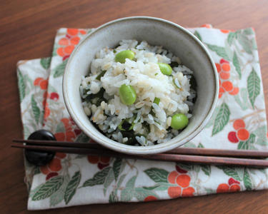 食物繊維たっぷり!枝豆ともち麦のわかめご飯