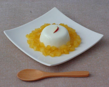 ヨーグルトゼリー角切りりんごとはちみつソース添え