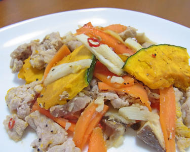 豚肉とかぼちゃのペペロンチーノ風炒め