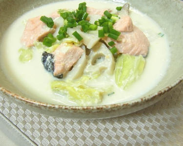 鮭とキャベツの味噌豆乳煮