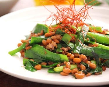 納豆と豚肉のピリ辛炒め