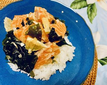 時短!ノンオイルで美味しい!サーモンとわかめのポキ丼